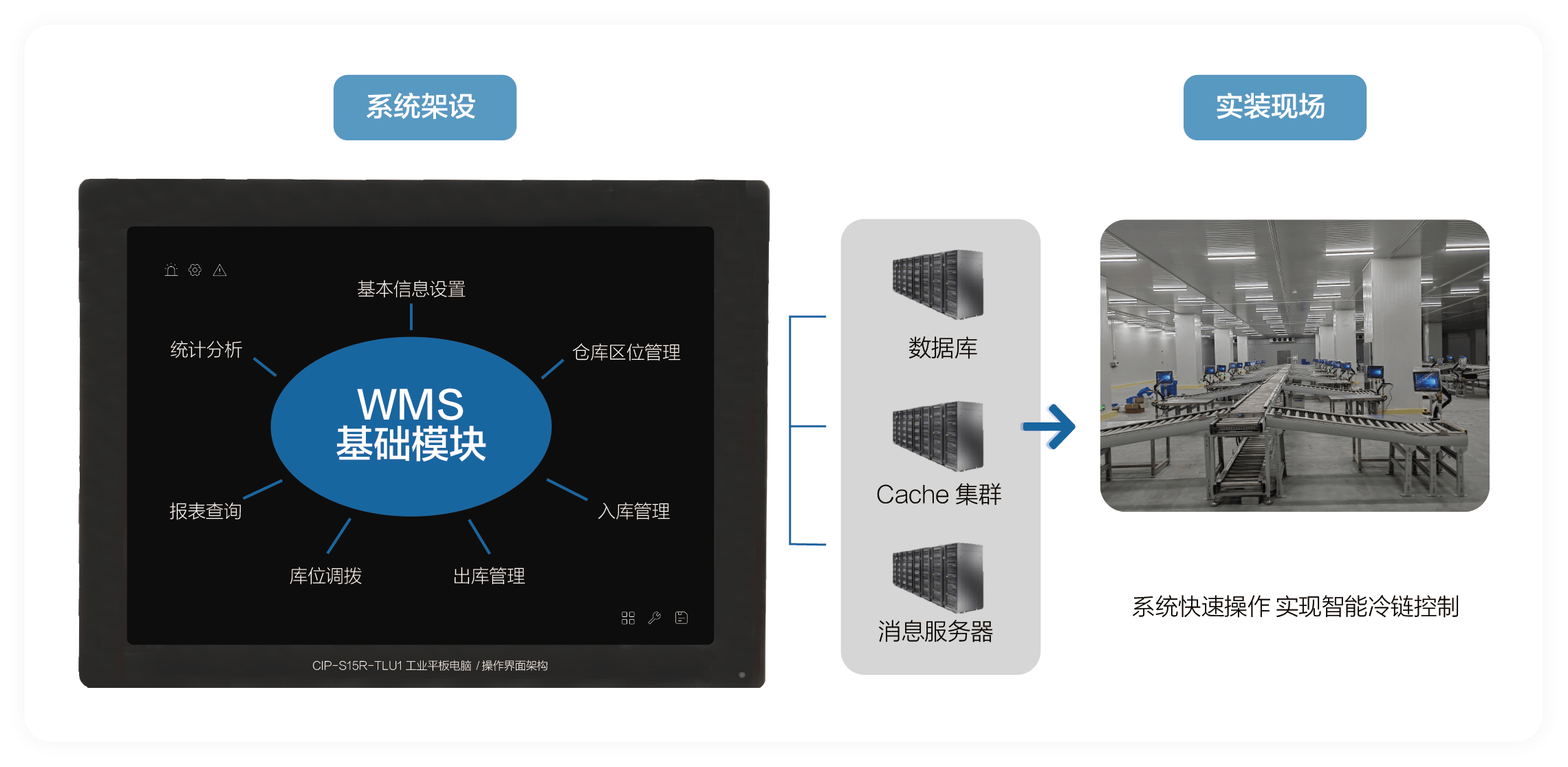 基于用户需求,酷游九州提供基于CIP-S15R-TLU1工业平板电脑为核心计算单元的智慧冷链仓储物流系统解决方案,该方案具备以下优势: